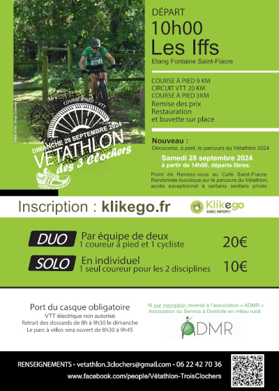 L'épreuve se déroule en trois parties : d'abord la course à pied (9kms), puis le VTT (20kms) et de nouveau la course à pied pour terminer (3kms) et peut s'effectuer en solo ou en duo sous forme d'un relais (un coureur et un vttiste).